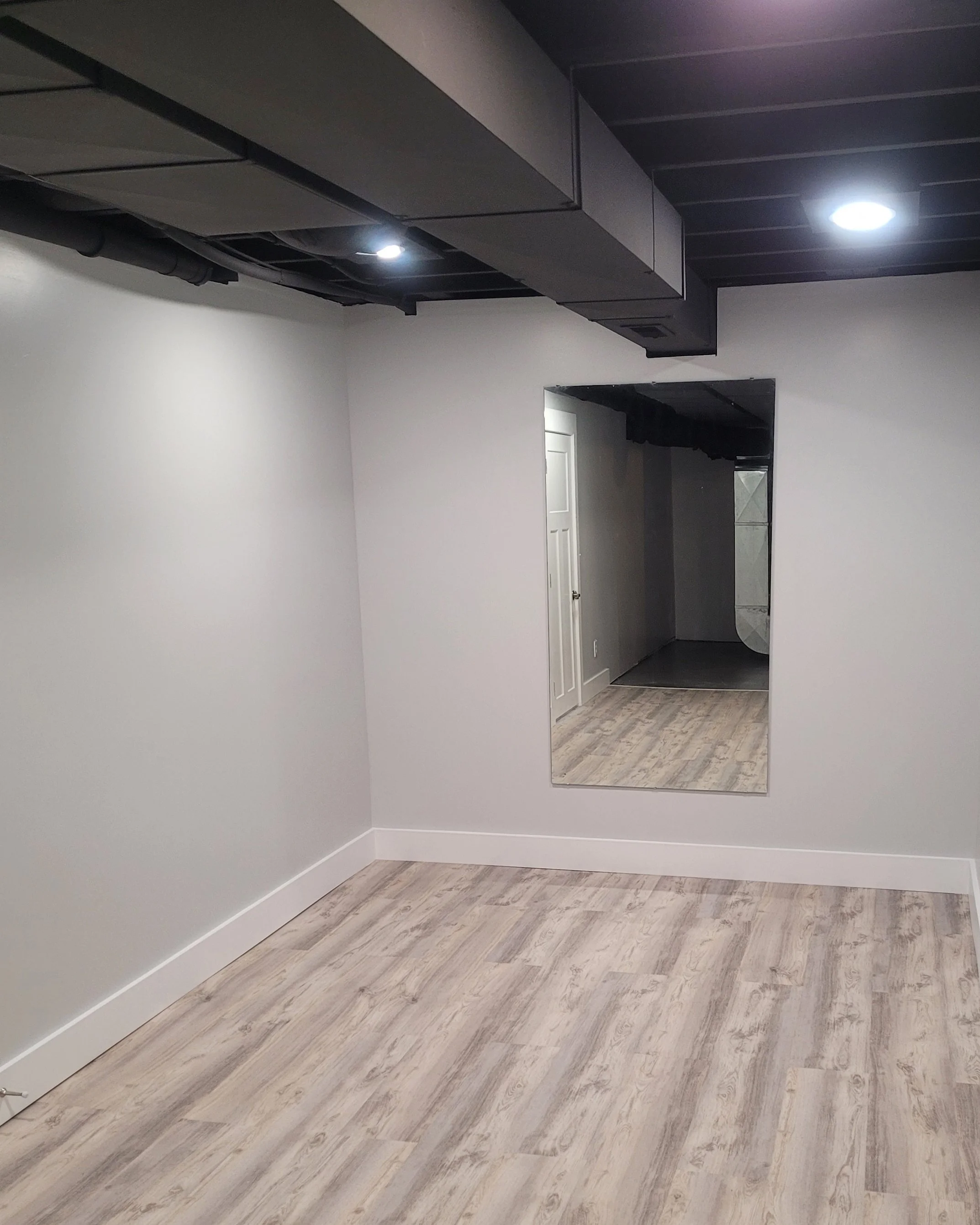 Specialty Projects - Interior Revive. Restore. Renew. || Revive. Restore. Renew. || Revive. Restore. Renew. || Wine Cellar Pantry Wood Flooring Three-Season Room Basement Finished Basement Custom Stained-Glass Window Entryway Gym Space with Painted Ceiling Stair Rails Pass-Through Wall Wood Flooring